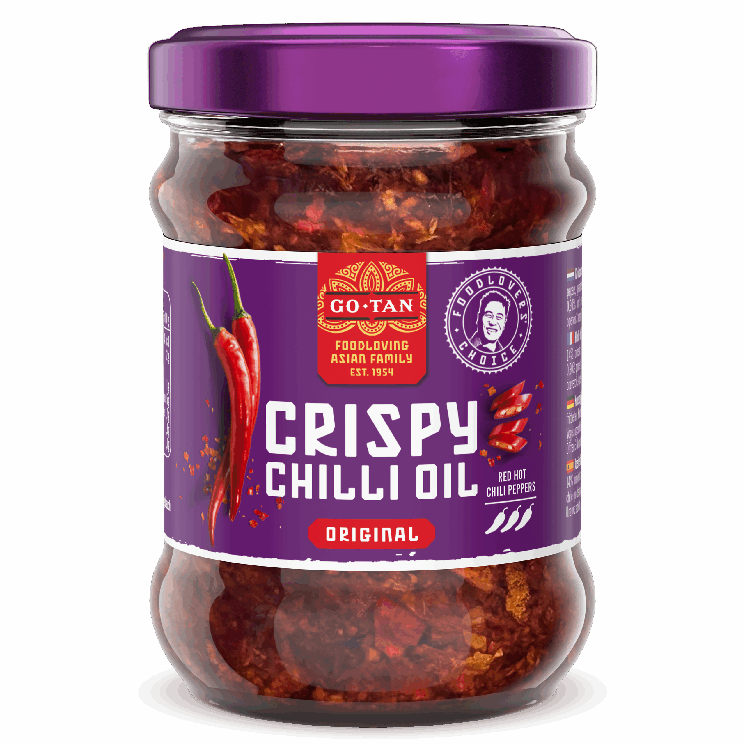 Go-Tan Crispy Chilli Oil is a flavorful and spicy condiment that adds kick and a crispy texture to any dish. It combines hot chili peppers with crispy garlic and onion pieces in aromatic oil, creating a rich and balanced flavor that enhances Asian recipes as well as many everyday meals.