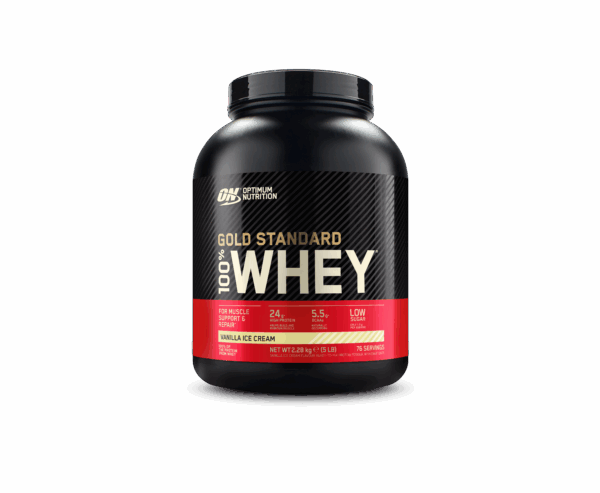 Discover the taste and quality of Optimum Nutrition Gold Standard 100% Whey Protein in a 2280 g package, Vanilla flavour. Ideal for athletes, bodybuilders, and anyone looking to boost their daily protein intake, this supplement provides high-quality whey protein with easy solubility and low sugar and fat content.