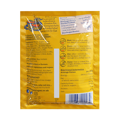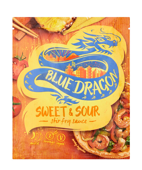 Ιδανική για stir-fry, κοτόπουλο, ρύζι, noodles ή λαχανικά, η Sweet & Sour Sauce Blue Dragon προσφέρει αυθεντική γεύση Ανατολής εύκολα και γρήγορα.