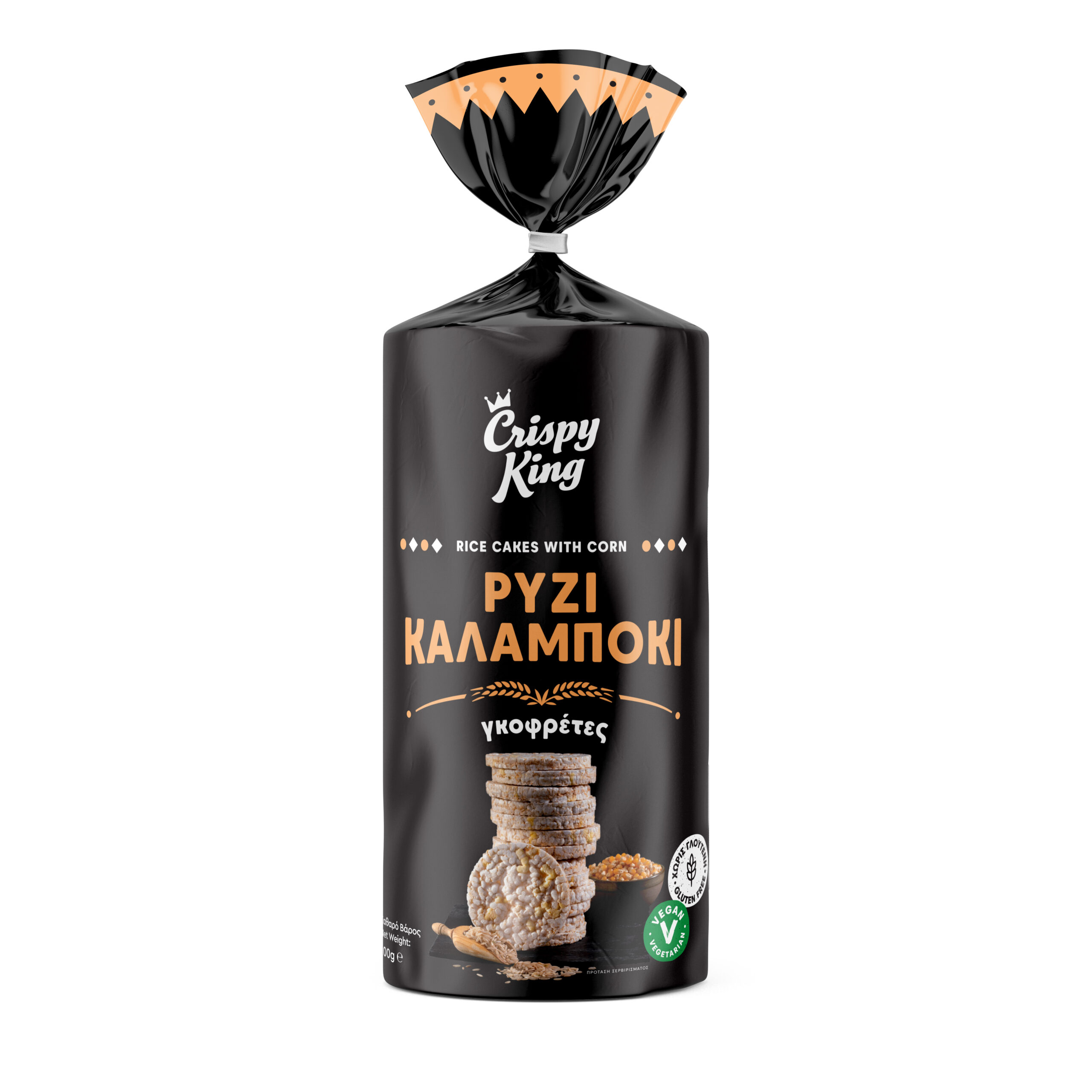 Crispy King Ρυζογκοφρέτες με Καλαμπόκι – η ιδανική επιλογή για όσους θέλουν ένα ελαφρύ, γευστικό και υγιεινό snack. Φτιαγμένες με ποιοτικό ρύζι και καλαμπόκι, και εμπλουτισμένες με αλάτι Μεσολογγίου, προσφέρουν πλούσια γεύση και τραγανή υφή με λίγες θερμίδες.
