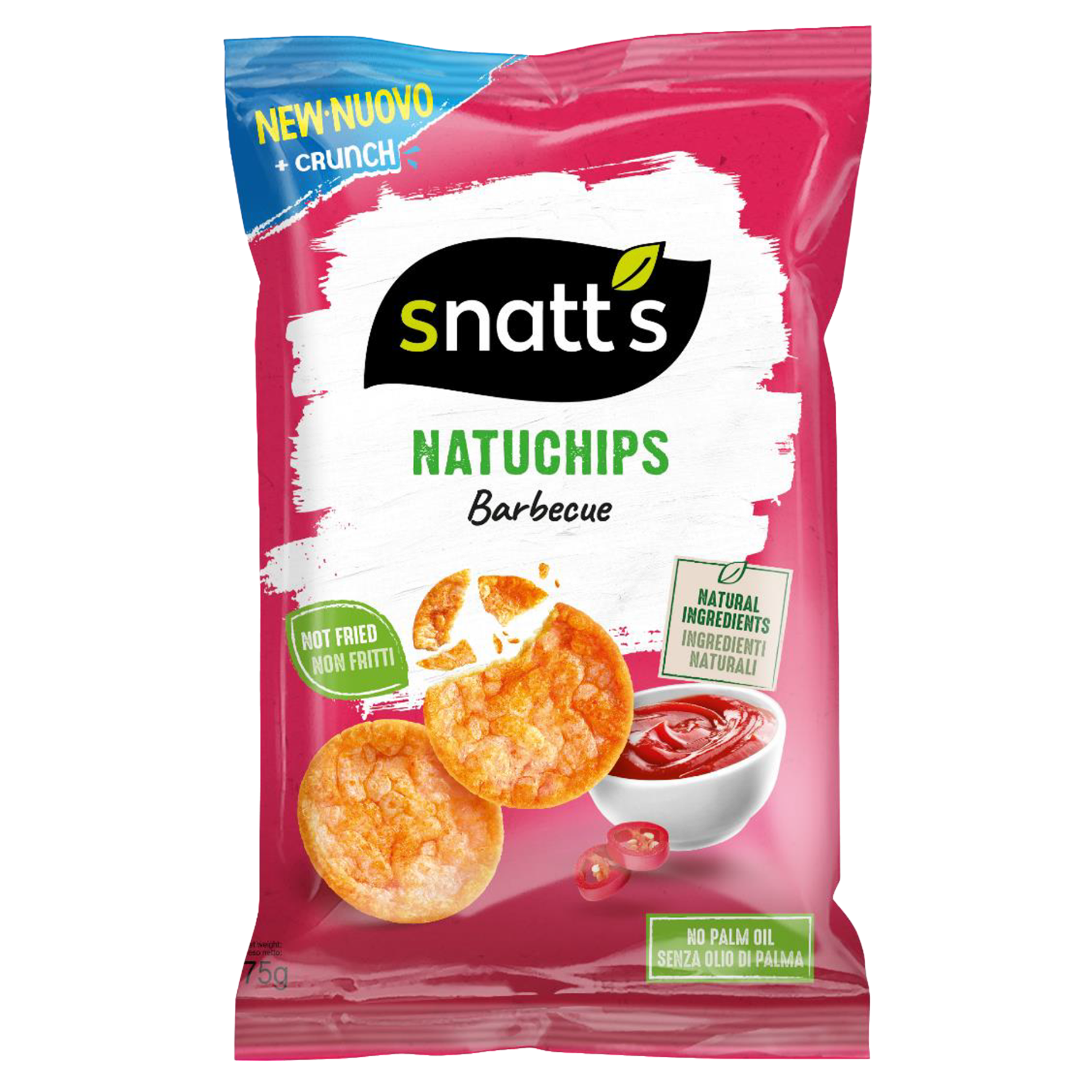 Snatt’s Natuchips Μπάρμπεκιου – η τέλεια ισορροπία ανάμεσα στη γεύση και την υγιεινή απόλαυση. Φτιαγμένα με 100% φυσικά συστατικά, τα Snatt’s Natuchips είναι φουρνιστά, τραγανά και προσφέρουν την αγαπημένη γεύση μπάρμπεκιου με λιγότερα λιπαρά σε σύγκριση με τα κλασικά σνακ.
