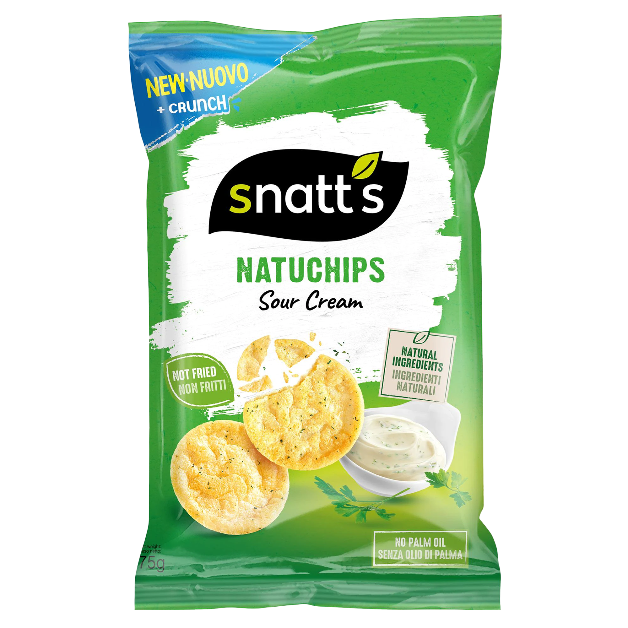 Snatt’s Natuchips Sour Cream – μια δροσερή, απολαυστική και υγιεινή επιλογή για κάθε στιγμή της ημέρας. Φτιαγμένα με 100% φυσικά συστατικά, τα Natuchips προσφέρουν την αγαπημένη γεύση ξινής κρέμας και μαϊντανού, συνδυάζοντας πλούσια γεύση με ελαφριά υφή.